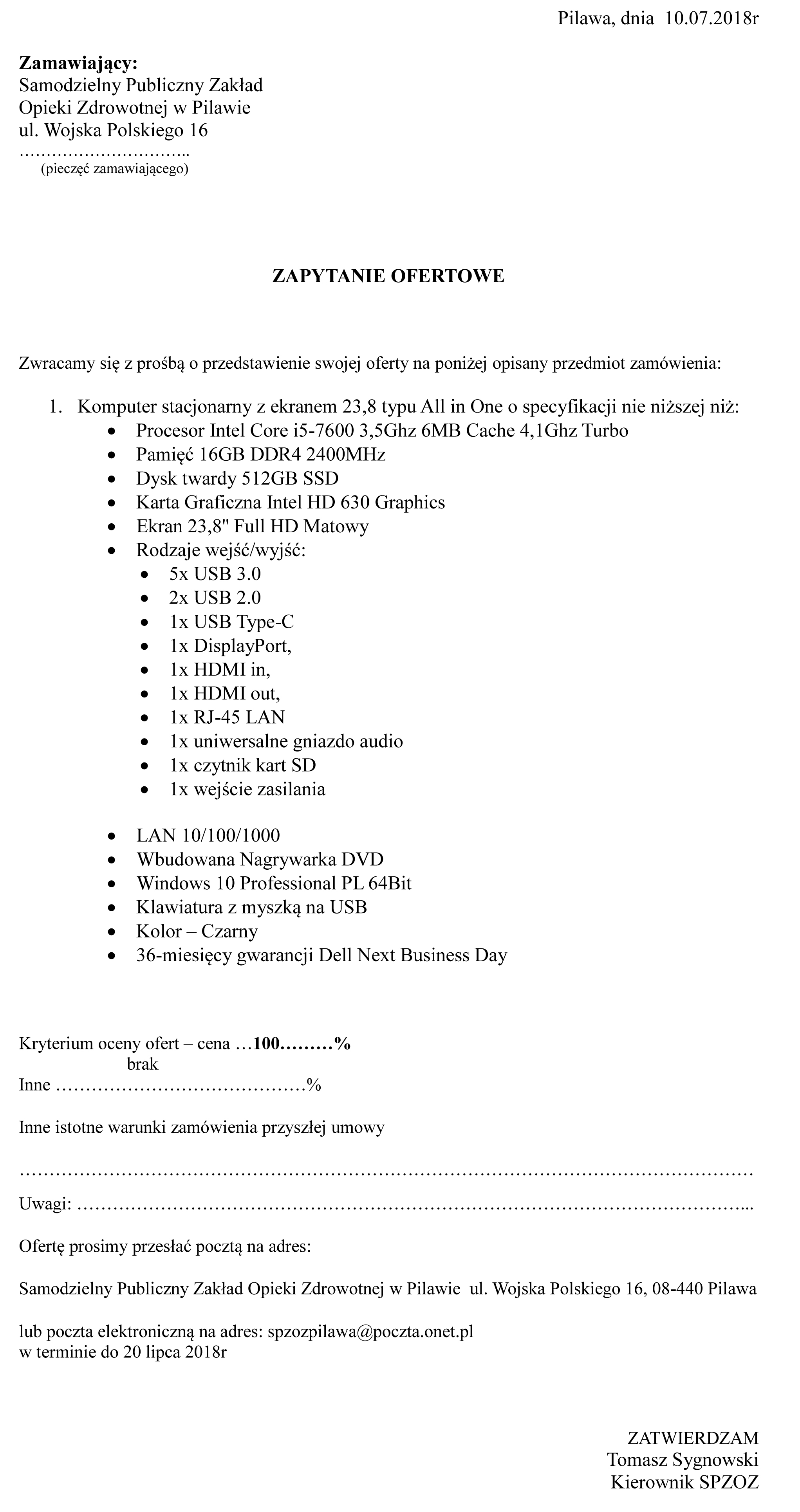 - Kategoria: Zamówienia do 30 tysięcy euro