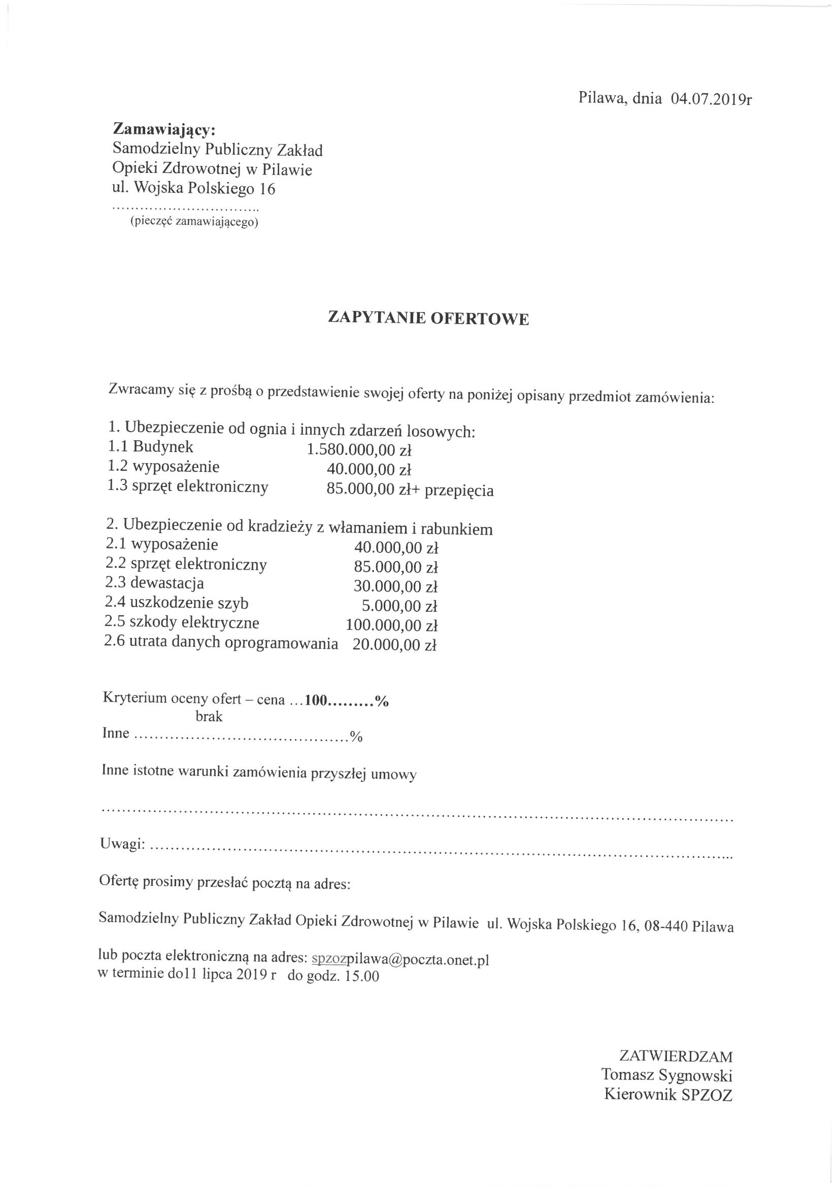 Zapytanie ofertowe na ubezpieczenia mienia
