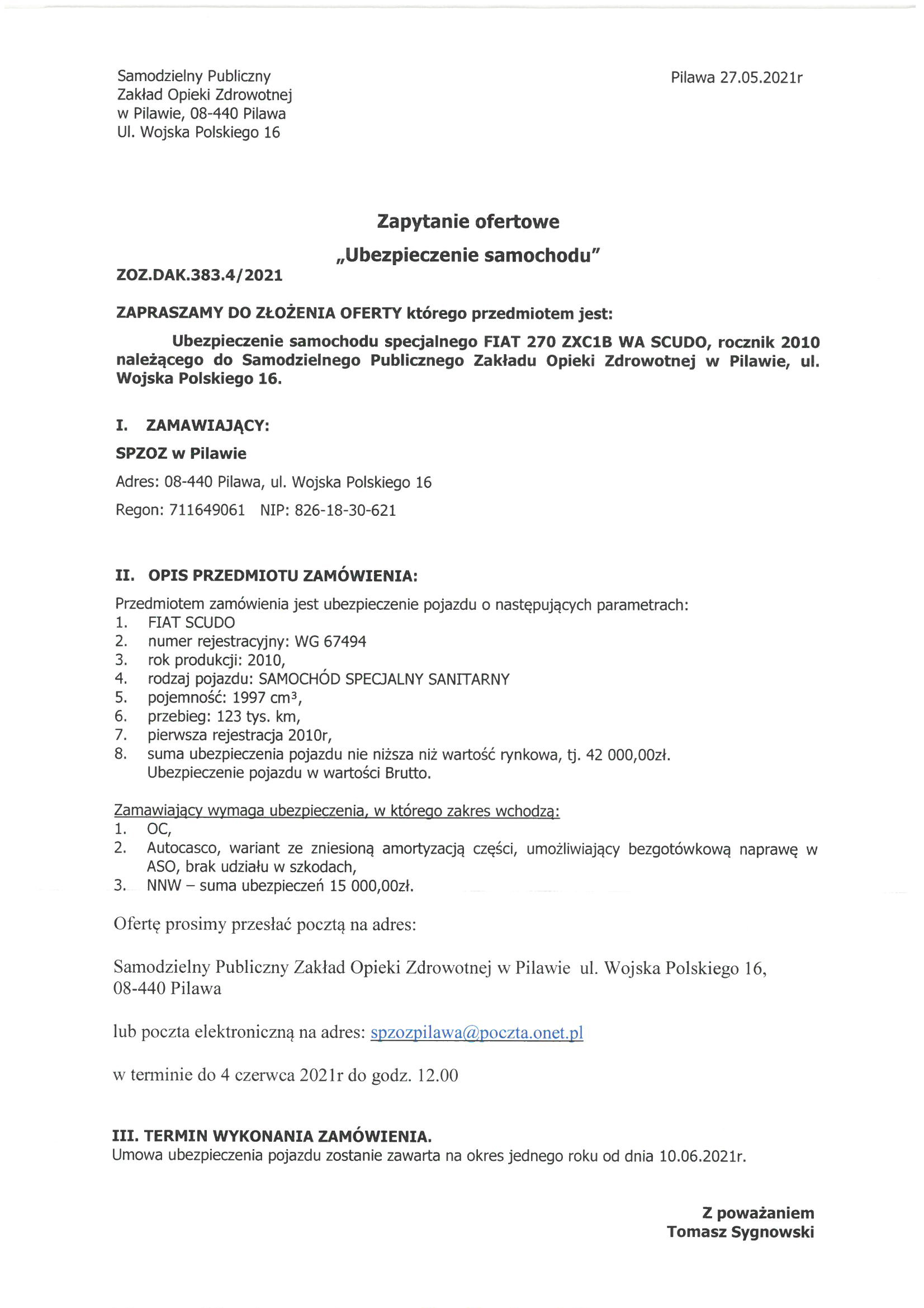 Zapytanie ofertowe na Ubezpieczenie samochodu