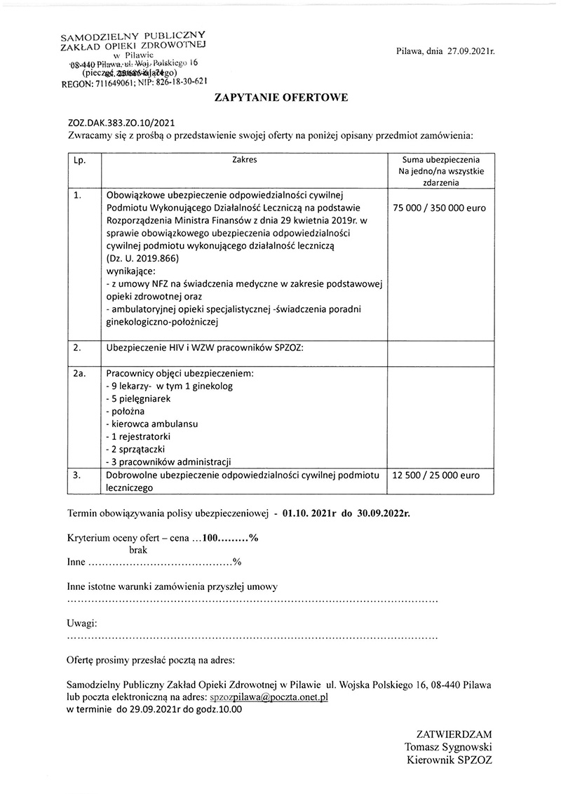 Zapytanie ofertowe na ubezpieczenie OC pracowników