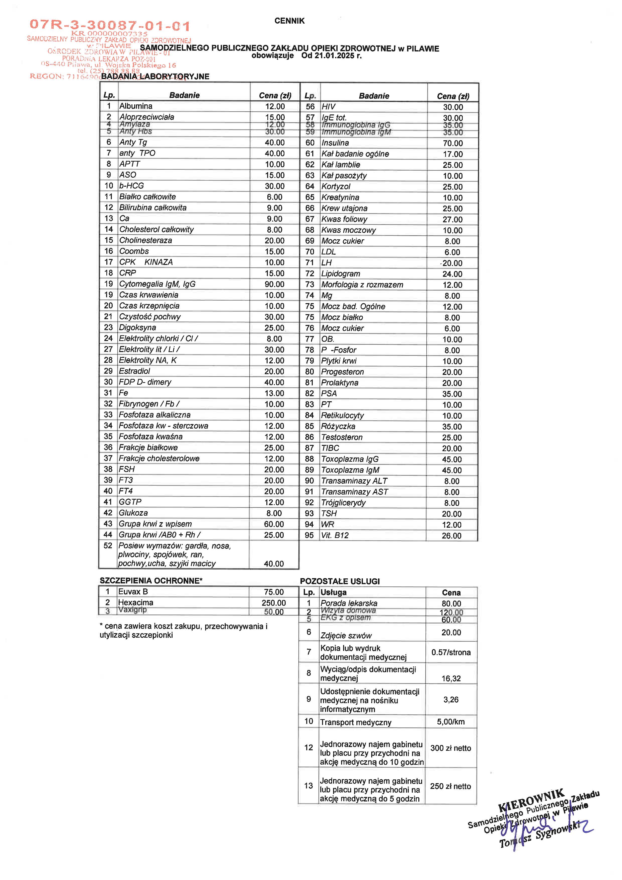 • Cennik