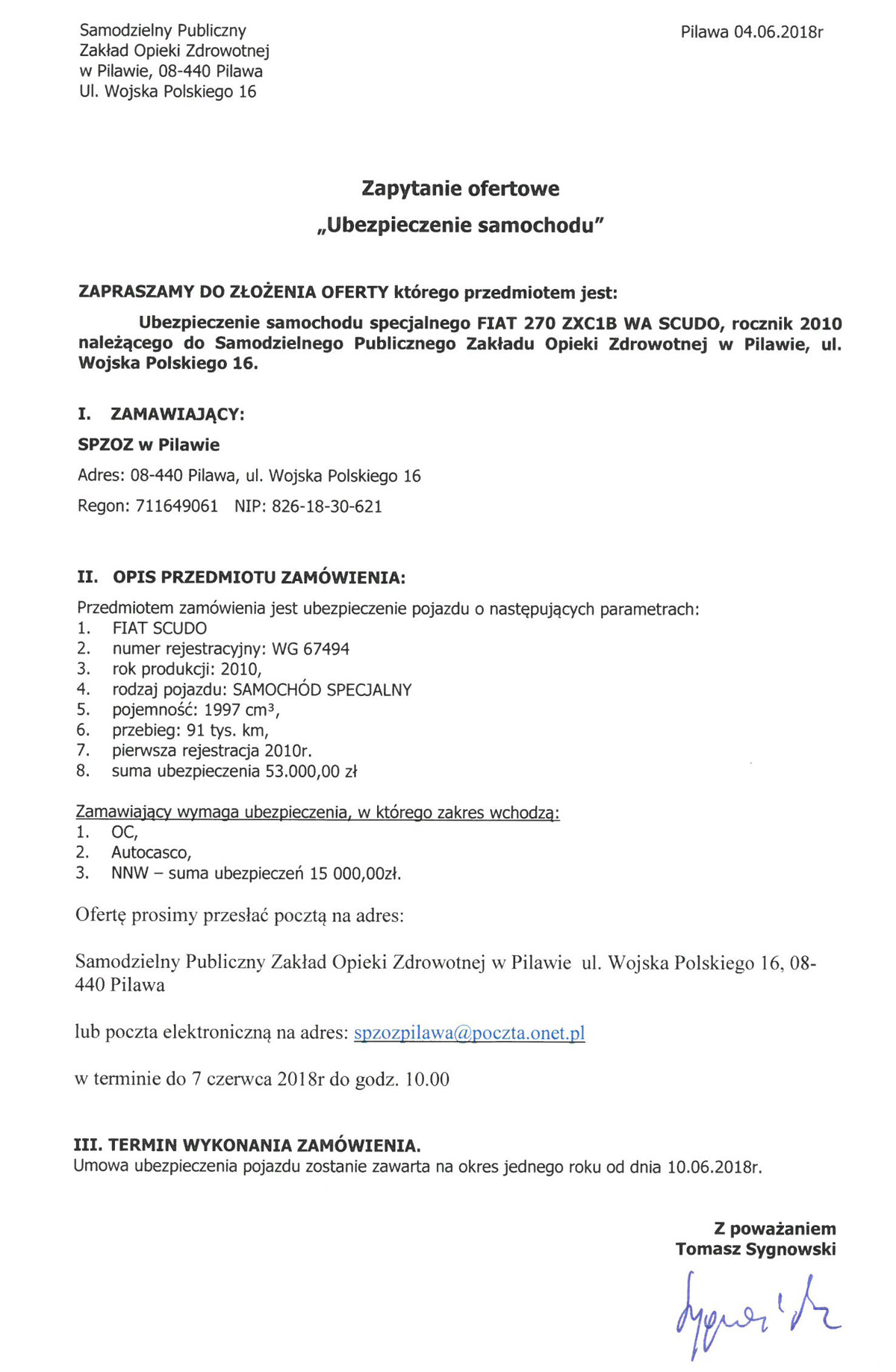 Zapytanie ofertowe na ubezpieczenie samochodu