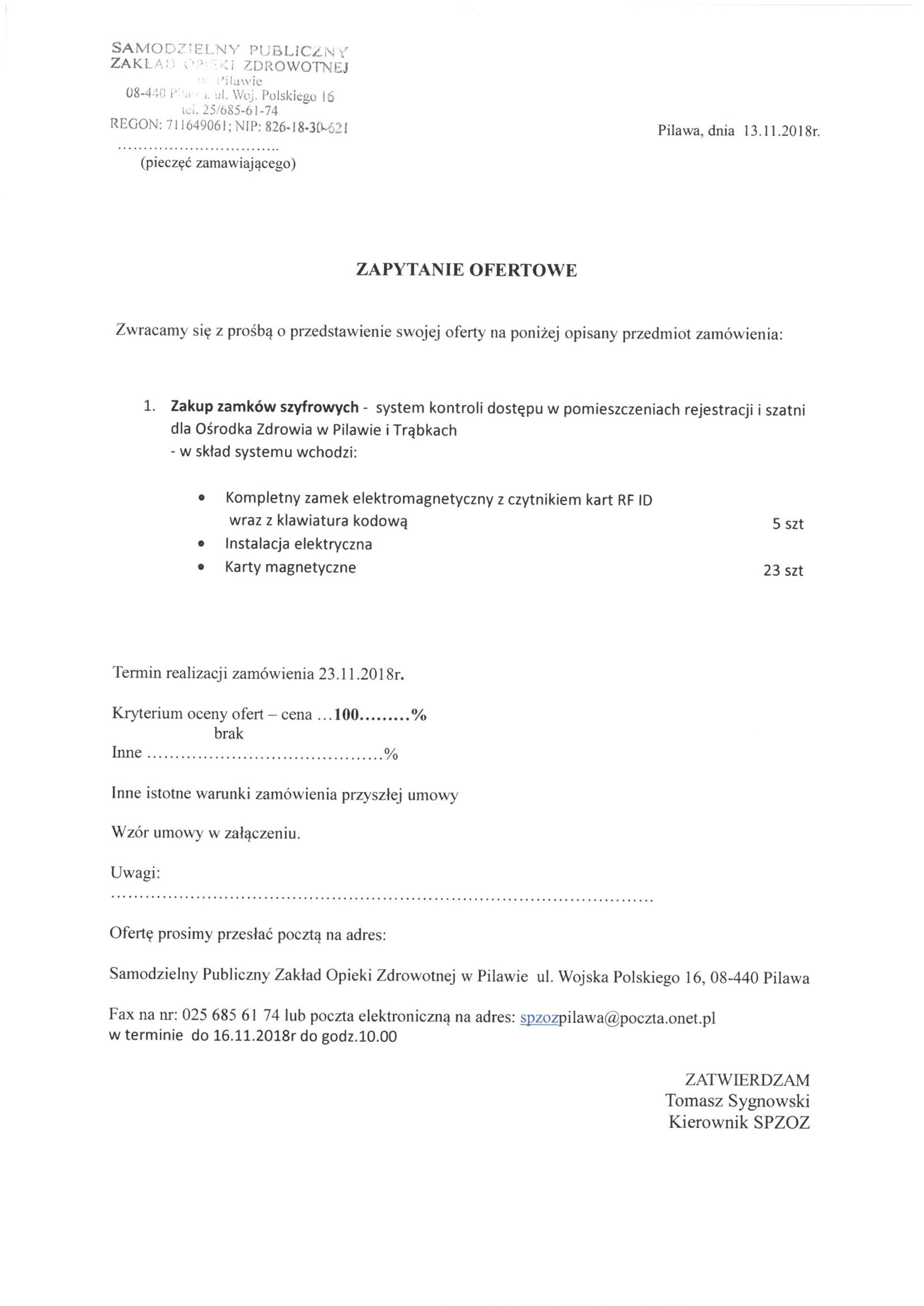 Zapytanie ofertowe na zakup zamków szyfrowych
