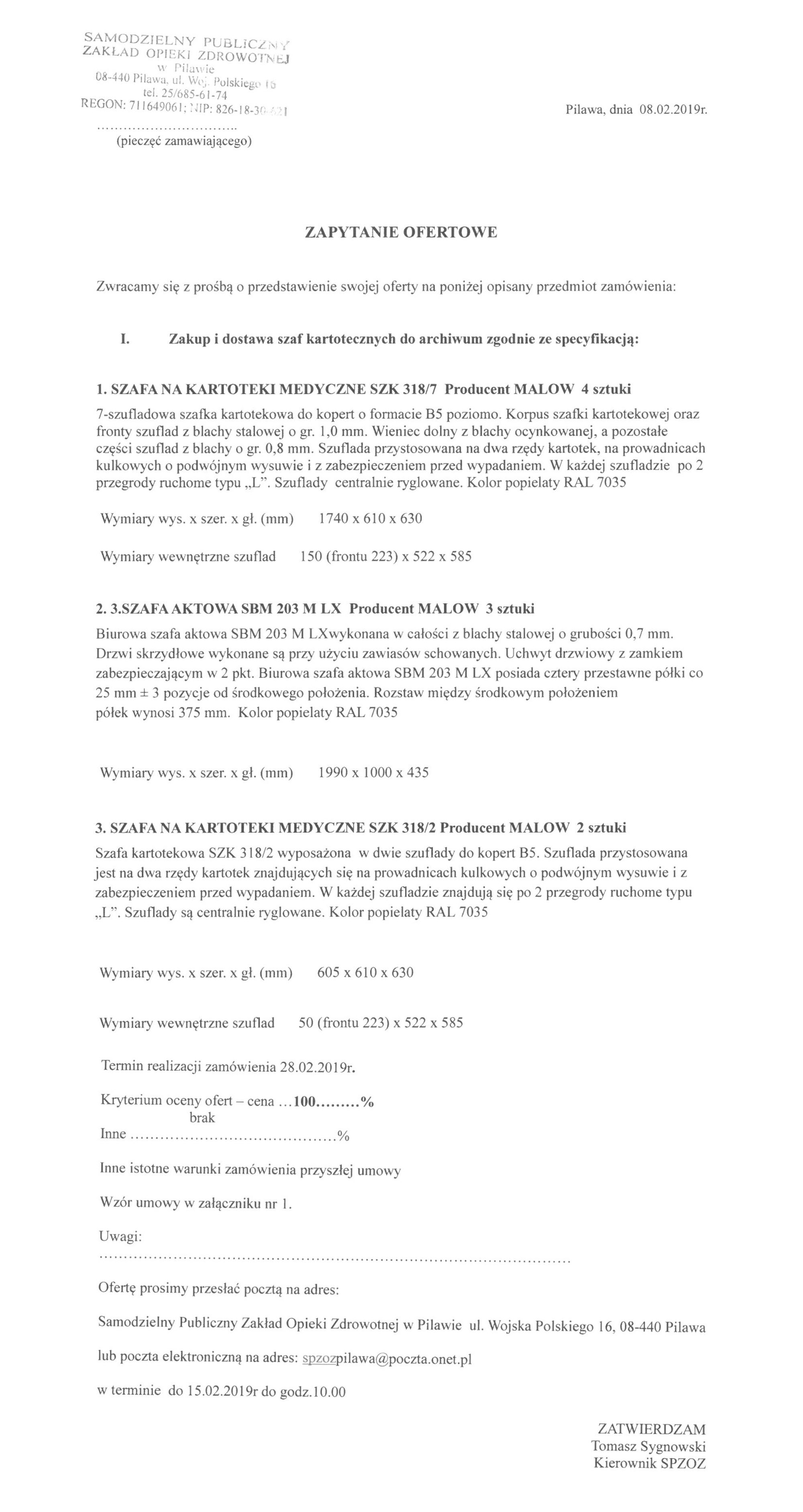 Zapytanie ofertowe na zakup i dostawę szaf kartotecznych