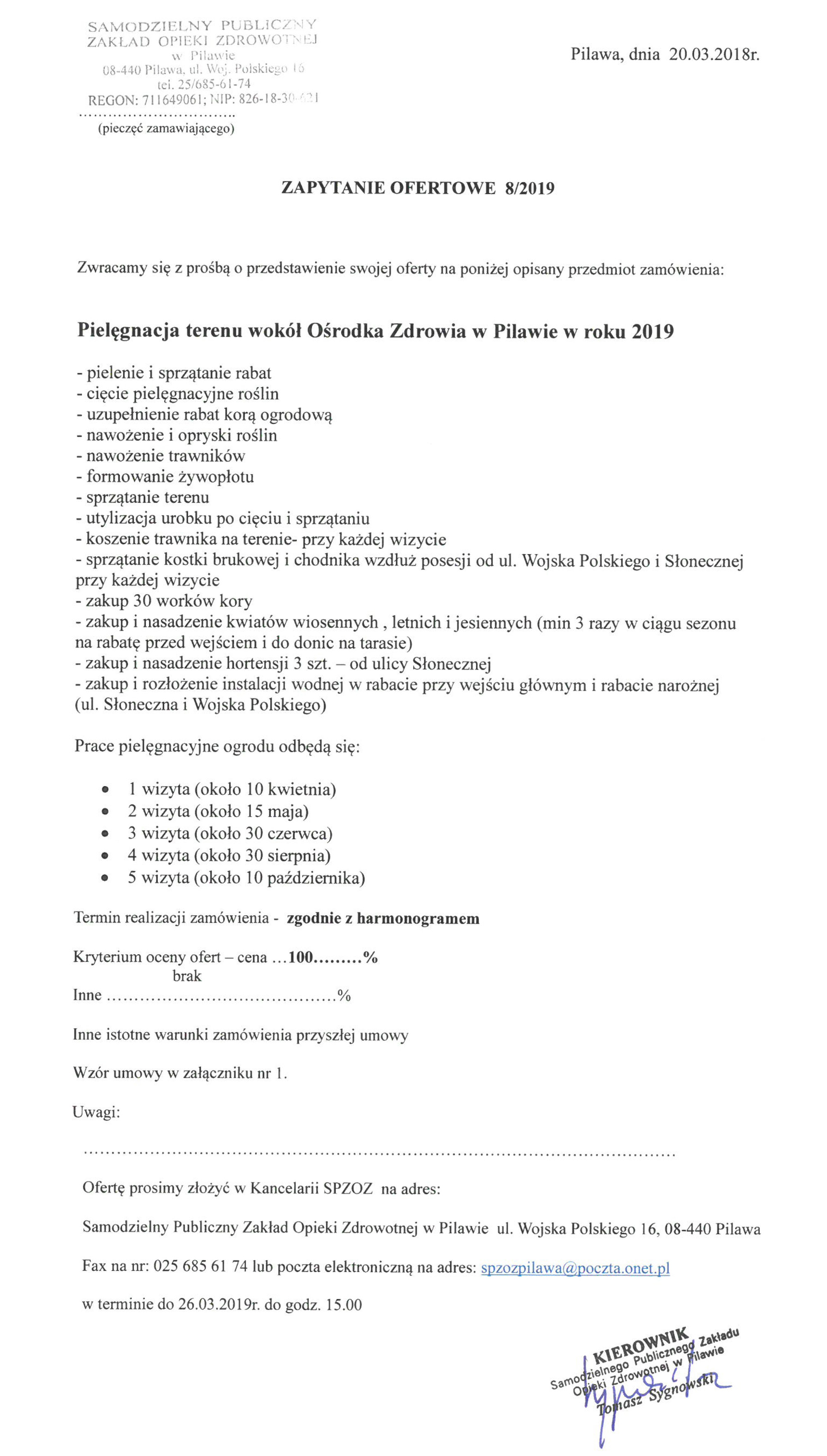 Zapytanie ofertowe na pielęgnację terenu wokół Ośrodka Zdrowia w Pilawie