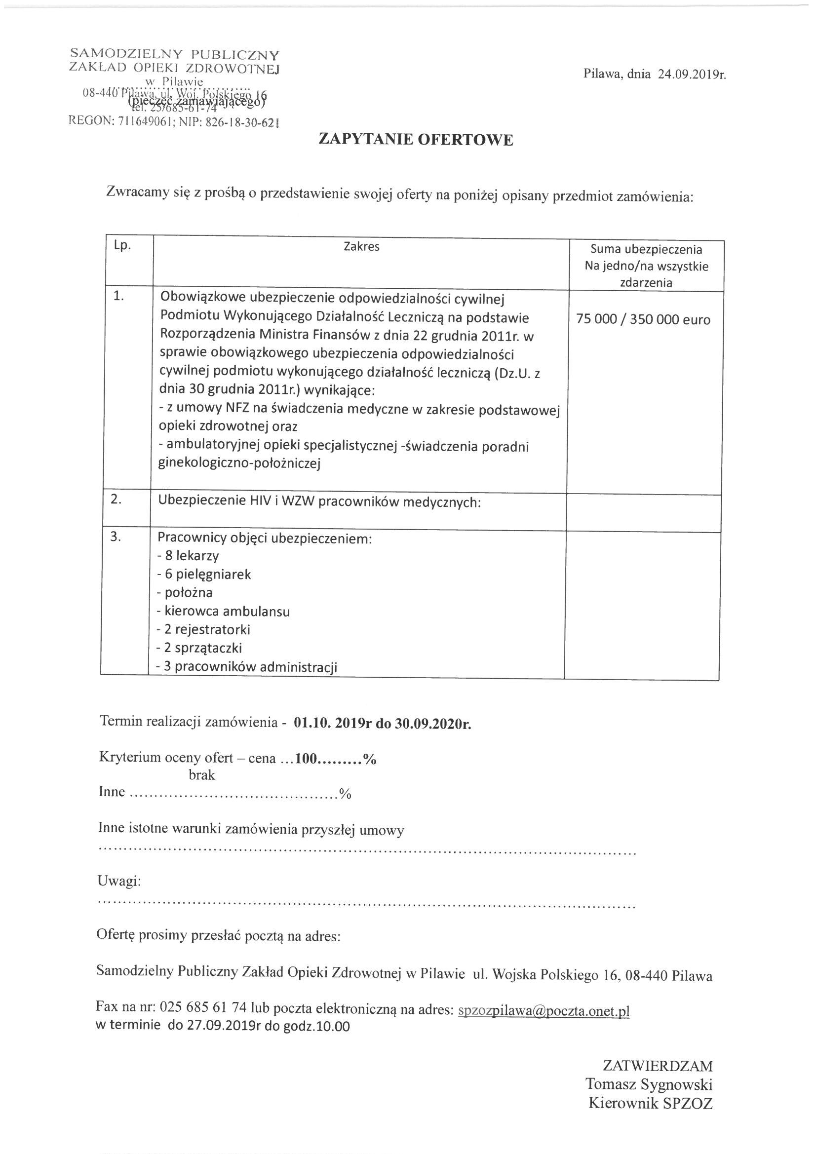 Zapytanie ofertowe na ubezpieczenia